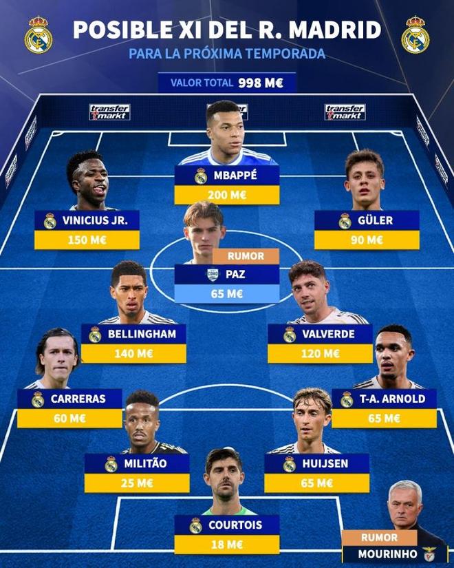 穆里尼奥回归皇马阵容预测:姆巴佩领衔,帕斯回归,维尼修斯留队
