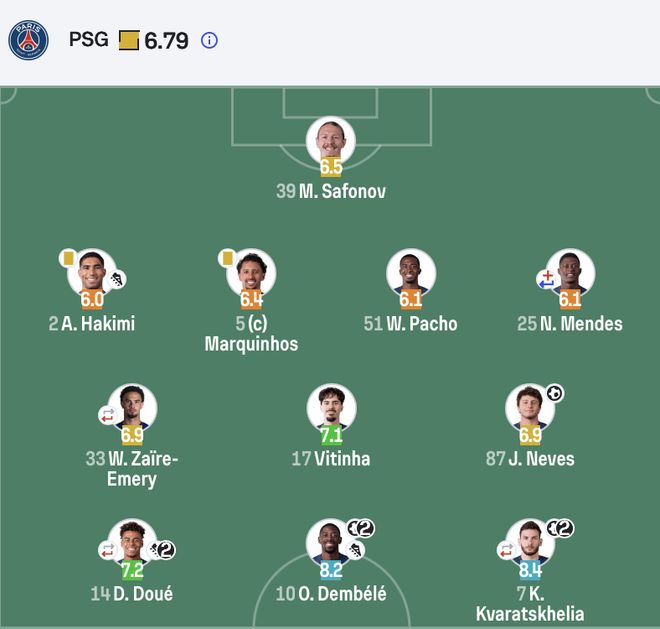 从登贝莱到克瓦拉茨赫利亚、再到阿什拉夫、杜埃的他们人实在是太多了。攻击端效率实在是太高了。