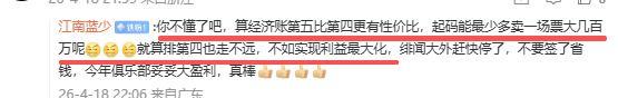 球迷与媒体人互动时说:“你不懂了吧,算经济账第五比第四更有性价比,起码能最少多卖一场票大几百万呢,就算排第四也走不远,不如实现利益最大化”。诸位,你说广东队今晚输得诡异吗?是不是有意选择第五名?