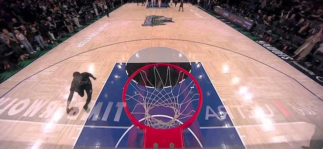 当然这样的镜头出现在最后时刻。当时森林狼已经锁定胜局了,麦丹却在最后时刻上了一个空篮,这样的过程也确实意外。你要知道麦丹上篮的时候是没人进行防守的,他却果断完成得分。我们从这个画面来看,他面前和后面一个人都没有。