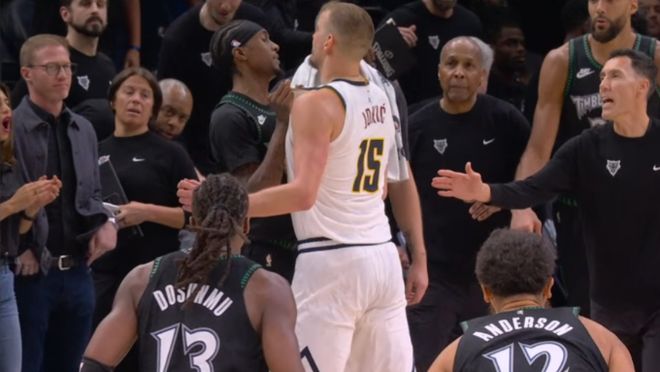 在森林狼主场112-96大胜掘金的比赛,森林狼扩大总分3-1领先夺得赛点。在比赛最后时刻胜负已定情况下,麦克丹尼尔斯依然选择铁血上篮再得2分“羞辱”掘金,让打得憋屈的约基奇直接情绪失控。