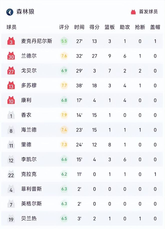 反观森林狼,尽管兰德尔拼尽全力,25投11中拿下27分9篮板6助攻,但受限于爱德华兹脚踝扭伤、戈贝尔膝部炎症缺席,球队内线护框与外线牵制能力大幅削弱,整体攻防体系运转迟滞,纵使全场拼抢积极,仍难敌掘金多维立体攻势。
