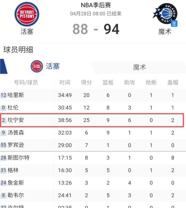 南昌晚报:《NBA季后赛|魔术力克活塞再下一城,大比分3-1夺赛点!班凯罗18分8板,坎宁安25分9板6助》2026年4月28日虎扑体育:《哈登今年季后赛命中28颗运动战进球、但贡献24次失误》2026年4月28日