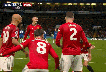 很快,B费罕见地右路突破下底传中,库尼亚门前抢点破门,曼联1-0取得领先。必须强调的是,B费之所以如此顺畅地过人成功,可能主要是因为防守他的切尔西球员,就是加纳乔……