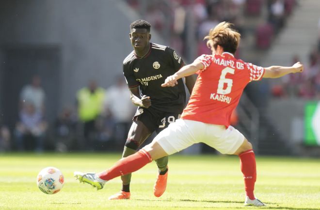 下半场开始前,孔帕尼又像上轮联赛那样,按计划换上凯恩和奥利塞,以让他俩保持比赛节奏,而路易斯·迪亚斯和帕夫洛维奇则下半休息。把队长袖标交给凯恩的戈雷茨卡从10号位回到6号位,格雷罗则换到左路。有了凯恩在10号位负责串联,有了奥利塞在右路通过稳健的持球调控节奏,加上戈雷茨卡回到更舒服的位置,拜仁迅速收复了一度被美因茨逼散的中场,小将恩迪亚耶也有了沿右路强行爆破两人下底传中这样的精彩发挥。