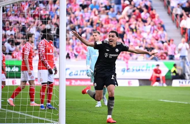 在上半场3球落后的情况下,杰克逊、奥利塞、穆西亚拉、凯恩各入一球,拜仁慕尼黑以4比3的比分逆转战胜美因茨!