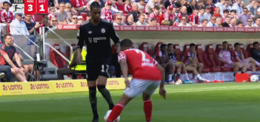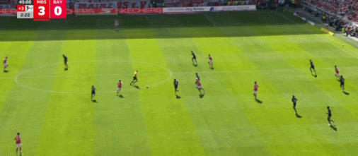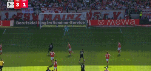 第53分钟,莱默尔传中,雅克松凌空抽射破门扳回一球,拜仁1-3美因茨
