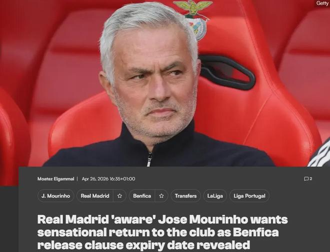 据悉,穆帅和本菲卡的合同中有终止条款,在特定的时间范围内,穆里尼奥甚至可以免费离队,而该条款将在本菲卡踢完本赛季的最后一场比赛的10天后到期,也就是大约在5月中旬。