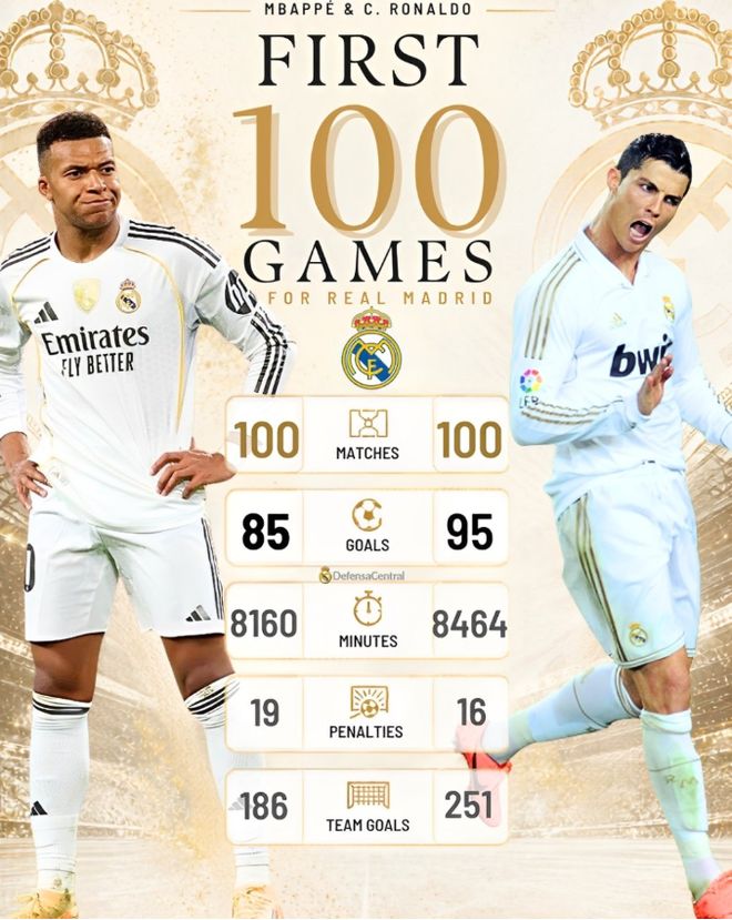 这也是为什么姆巴佩的皇马前100场,他的球队比C罗的球队少进了65球,也就是场均少进0.65个进球。