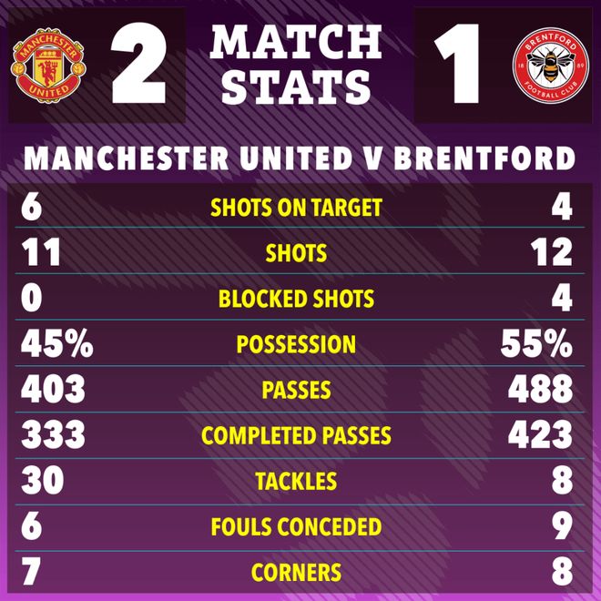 比赛第88分钟,布伦特福德的马蒂亚斯·延森打入神仙球,将比分差距缩小为1-2。但为时已晚,曼联最终有惊无险地守住一球优势,如愿在主场全取3分。不过,B费和卢克·肖下半场出现伤病,其中葡萄牙铁人坚持打满了全场,但胖肖伤退。