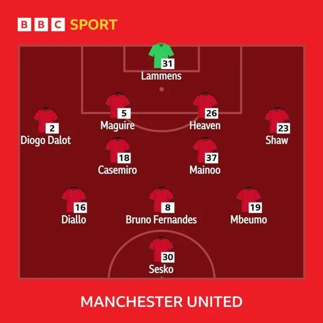 卡里克对首发阵容进行了两处调整,解禁复出的马奎尔替代马兹拉维,与埃登·海文搭档踢中卫,阿马德·迪亚洛则替代了受伤缺阵的库尼亚,出现在4231的左边锋位置。
